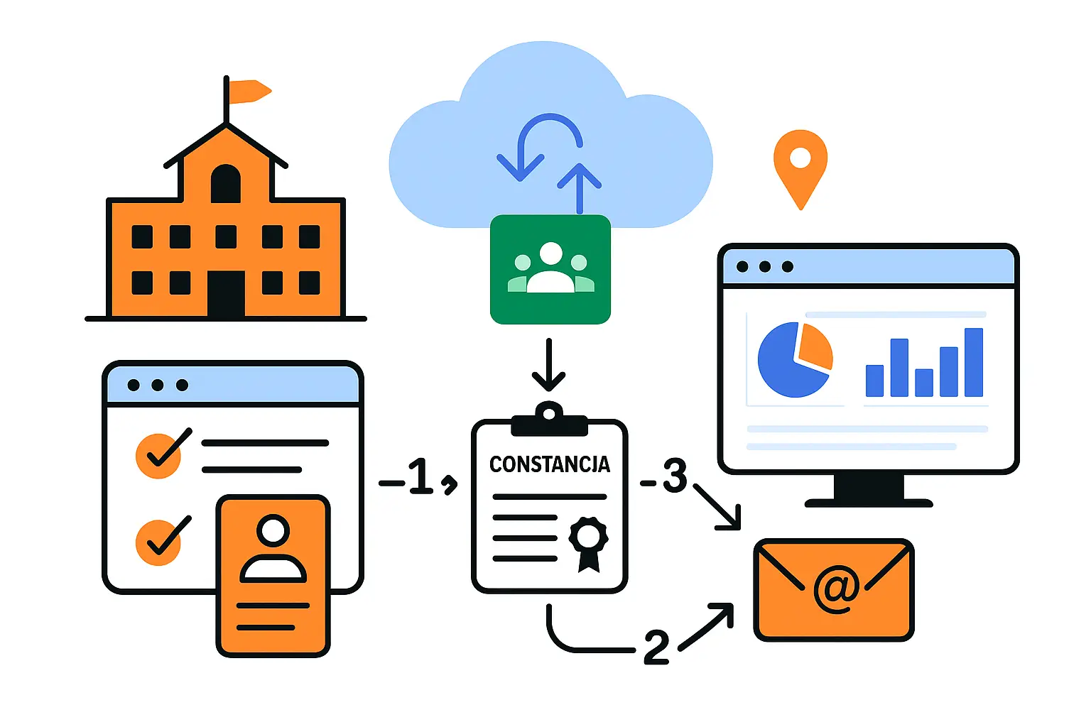 Google Workspace for Education, Classroom, sitios y flujos de admisión/constancias.